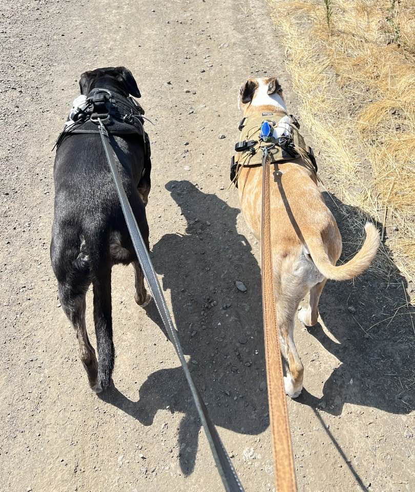 Since I’ve been walking them together, I try to be respectful of Brick’s limits while allowing Maybe her pleasure but it has taken us two years of baby steps to finally pass the play structure! Our first success was yesterday and Maybe and I were both excited for today to be our second win.