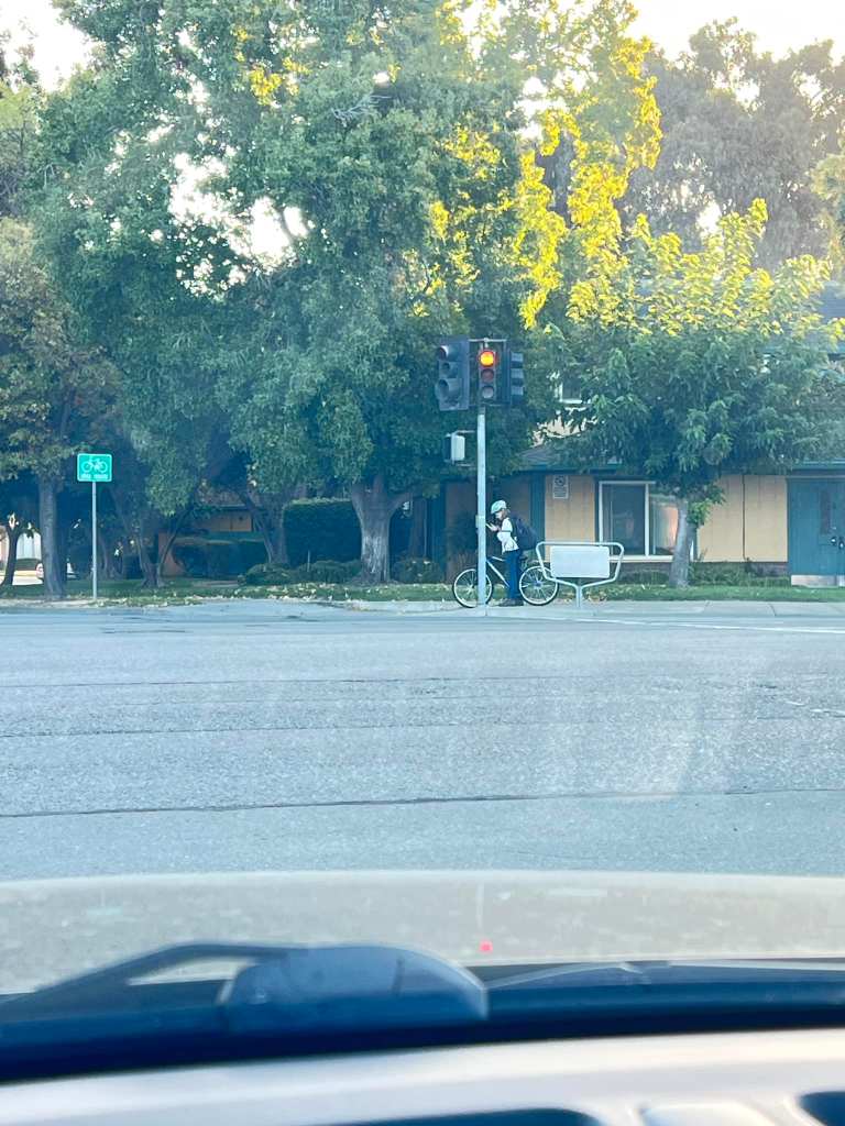 Sitting at a red light, waiting to cross a main thoroughfare from one residential block to another I see a girl on a bike. On the sidewalk. Staring at her phone. I got bristly. She is on the sidewalk, riding parallel to a green lane encased by bollards. There are people on the sidewalk, she’s about to ride into a cluster of people waiting for the bus and she has no idea because she has not taken her eyes off her phone. There is a pause in my hostile thoughts because I have to give her accolades for being able to ride one handed, keeping her balance, with the phone in her face. Oh to be young, right?!
