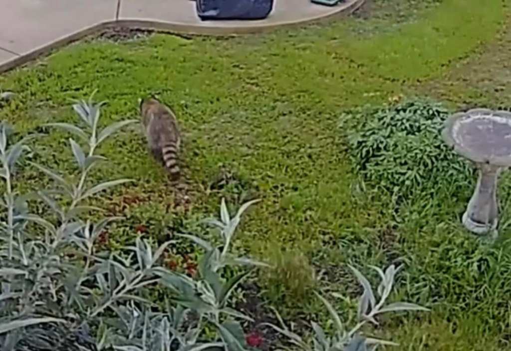 One raccoon went over the back fence, one over the front fence, the tree was still moving so there may be babies. No idea where Boyfriend went off to, but at least the bitey two listen.